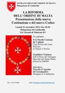 La riforma dell’Ordine di Malta. Delegazione di Lombardia: 21 novembre