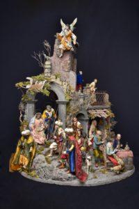 Nella sala della Medusa è esposto il presepio napoletano girevole: una classica scenografia in sughero, il tipico scoglio napoletano, ospita questa natività brulicante di personaggi. Accanto alla scena sacra dell’Adorazione dei Magi troviamo le scene di vita quotidiana come la meravigliosa osteria con la tavola apparecchiata. Sul retro un pastore dorme: è Benino, figura tipica del presepio napoletano che simboleggia colui che si è addormentato nel vecchio mondo e si risveglia nel nuovo mondo cristiano. Alcune antiche figure napoletane sono esposte anche all’inizio del percorso. Si tratta di una Sacra Famiglia, di due Mori con cavallo, questi ultimi che richiamano le figure rappresentate nel corteo dell’”Adorazione dei Magi di Tiziano, e di tre Re Magi di straordinaria fattura, con i volti in terracotta finemente modellati e gli occhi in pasta di vetro. Le barbe, i capelli e persino le rughe: ogni dettaglio dona grande espressività a questi maestosi personaggi. I vestiti sono in seta cuciti a mano, ornati di passamanerie dorate e ricami in canottiglia.