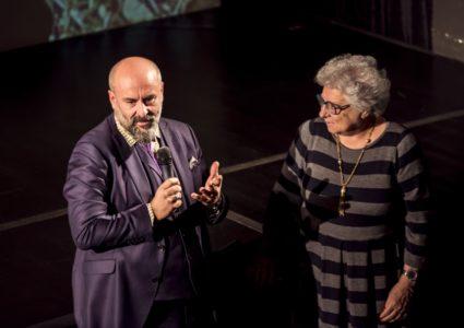 Appassionati d’opera, neofiti, semplici curiosi: la Prima di No’hma si rivolge a un pubblico eterogeneo. Anche quest’anno a condurre sarà lo scrittore e giornalista Stefano Jacini, che con garbo ed eleganza mescolerà aneddoti e divulgazione, tra riferimenti al Boris Godunov di Musorgskij e rimandi all’opera di Puškin. Senza far mancare, nemmeno questa volta, i colpi di scena; come nel corso della passata edizione, quando erano intervenuti a sorpresa il regista Davide Livermore (nella foto con Livia Pomodoro) e il Maestro Riccardo Chailly – che dirige ancora una volta la Prima, per la regia del danese Kasper Holten – per regalare al pubblico qualche inaspettata anticipazione sull’allestimento del Macbeth e alcune personali considerazioni sull’opera verdiana.