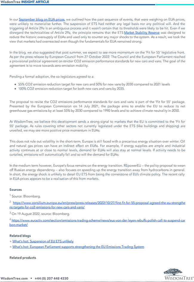 What’s Hot – 04 Nov – Progress on fit for 55 breathes life into EUA market