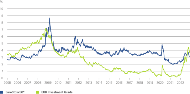 Ebbene, in DWS pensiamo naturalmente che i nostri economisti possano di tanto in tanto generare spunti utili. Si dà il caso che siamo anche piuttosto positivi sulle obbligazioni societarie dell’Eurozona. In vista del 2023, riteniamo che l’inflazione possa raggiungere il picco massimo e che le recessioni saranno probabilmente relativamente lievi, limitando i rischi di default. Giudicare tali rischi è notoriamente difficile, come hanno scoperto gli acquirenti di strumenti di debito, comprese le tranche di mutui subprime con rating investment grade, durante la crisi finanziaria mondiale. Inoltre, i periodi di congiuntura favorevole possono portare a eccessi nell’assunzione di rischi manageriali, i cui costi diventano evidenti solo durante la successiva ondata di insolvenze obbligazionarie. Semmai, qualsiasi grafico che suggerisca un parallelismo con gli anni che hanno preceduto il GFC dovrebbe far riflettere sia gli investitori obbligazionari che quelli azionari. Potrebbe, ad esempio, suggerire che gli investitori obbligazionari vedono rischi su cui i loro colleghi azionisti sono ancora un po’ troppo indifferenti. Nel bene e nel male, prendere le giuste decisioni di investimento è raramente così ovvio come potrebbe sembrare con il senno di poi.