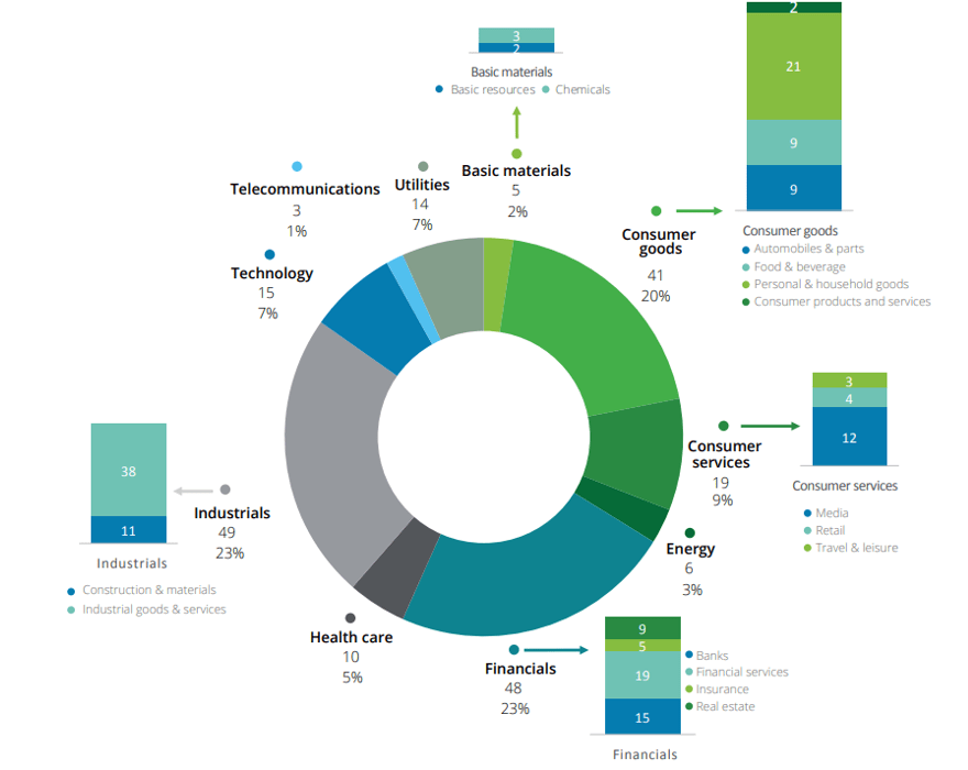 Ai fini dell’analisi, le società sono state classificate in 10 macro-settori e 20 settori, sulla base dei cluster di Borsa Italiana, con l’obiettivo di meglio esaminare le correlazioni tra informativa di bilancio sul cambiamento climatico e core business delle entità. In base al livello di dettaglio delle informazioni fornite, si sono individuati due sottogruppi differenziati: