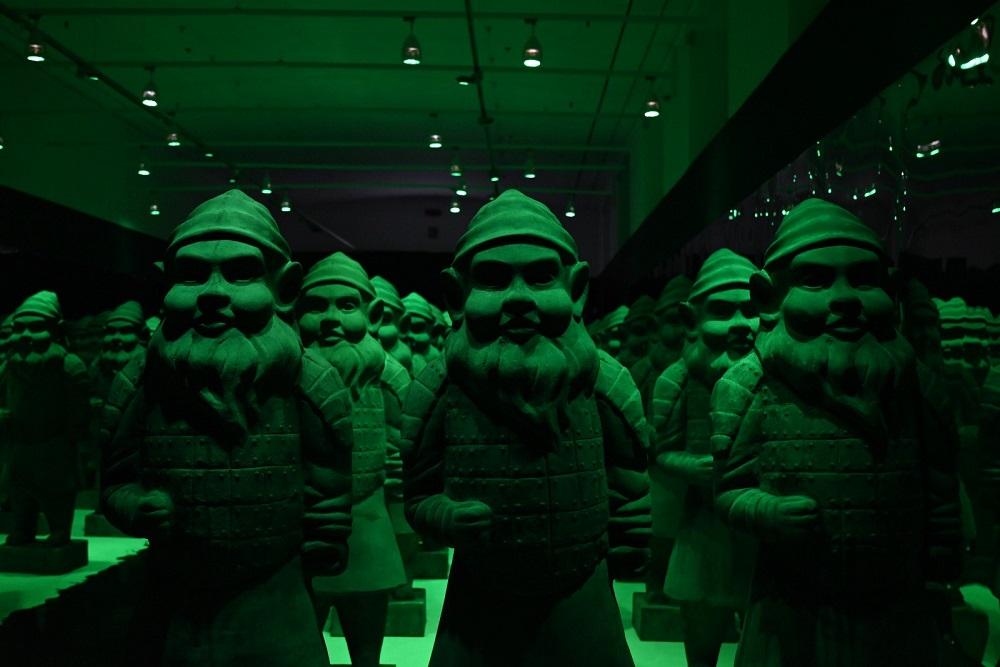 “Fisicamente ci sarà appunto un vero e proprio esercito di terracotta, formato da 32 statue alte 1.80 m. Una mostra tridimensionale, grazie alla quale ho potuto confrontarmi con nuovi medium artistici e soprattutto, puntare su prodotti completamente inediti. Alla fine del percorso, invece, nella seconda sezione, quattro monitor espongono un’opera di Computer Graphic Animation: un’animazione digitale, lavorata successivamente da una intelligenza artificiale. E’ un programma nuovo, che fino a sei mesi fa non si sarebbe potuto utilizzare perché non esisteva. La vera sfida, infatti, è stata quella di lavorare con uno strumento talmente moderno, che mentre programmi la mostra, ti supera continuamente e quindi tu riesci a fare novità su novità, che fino alla settimana precedente non si potevano fare”.