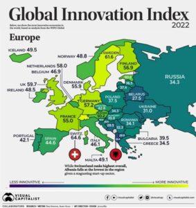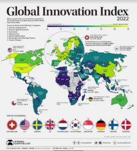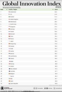 E’ solo 28esima (su 50) l’Italia nell’annuale report ‘Global Innovation Index’ stilato da Visual Capitalist’, lo studio che analizza, attraverso 81 indicatori, raggruppati in 7 categorie la propensione all’innovazione dei paesi determinandone una classifica a livello mondiale.