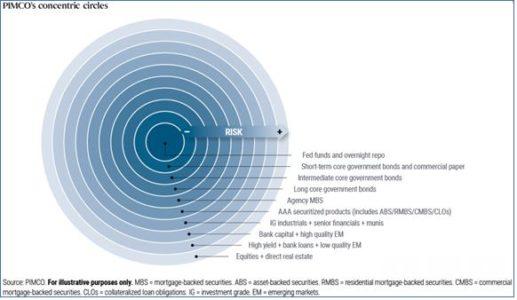 Nel nostro modello, la variazione del costo del denaro al centro, con i tassi ufficiali fissati dalle banche centrali, si propaga ai cerchi più esterni influenzando i prezzi degli attivi rischiosi sul perimetro. Crediamo che l’incertezza sulle prospettive riguardo alla politica della Federal Reserve dovrebbe essere molto inferiore nel 2023. Se la Fed e le altre banche centrali sapranno convincere gli investitori che il centro terrà, gli attivi vicini al nucleo centrale dovrebbero registrare valide performance, alimentando migliori rendimenti per gli attivi sul bordo. Tuttavia, se si verificasse una perdita di fiducia in merito all’inflazione e le banche centrali dovessero alzare i tassi più del previsto questo avrà conseguenze negative per gli attivi nei cerchi più esterni.