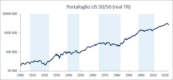 Negli ultimi tre anni, il rendimento di un portafoglio diversificato è rimasto complessivamente prossimo allo zero. Se le banche centrali riescono a portare a termine quanto intrapreso quest’anno, ossia a controllare l’inflazione senza provocare una grave recessione, potremo mantenere un atteggiamento in generale costruttivo per gli anni a venire. Storicamente, i “decenni perduti” hanno coinciso con le prime due guerre mondiali, il periodo di stagflazione degli anni ‘70 e lo scoppio delle bolle finanziarie negli anni 2000. Salvo eventi eccezionali, riteniamo che l’armonia spezzata dal covid e dalla guerra possa tornare sui mercati.