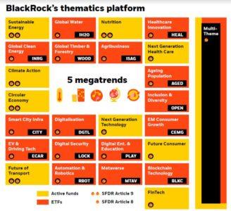 BlackRock ha considerato e identificato le aree di crescita sostenute da normative, cambiamenti sociali ed economici e siamo convinti essere fondamentali per il raggiungimento degli obiettivi netti zero.