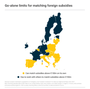 Le nuove regole, tra le altre cose, consentiranno ai Paesi dell’UE di “abbinare” i sussidi esteri per impedire la costruzione di siti di produzione di tecnologia verde all’estero anziché all’interno dell’UE. Una buona notizia per chi intende costruire una fabbrica solare, una produzione di pompe di calore, un impianto di batterie o qualcosa di simile. Il principio, in parole povere, dovrebbe essere quello che se in un Paese non UE i costi dovessero essere più convenienti il capo della concorrenza dell’UE Margrethe Vestager potrebbe essere disposta (o costretta obtorto collo) ad “abbinare” un sussidio, anche se poi non tutti i Paesi dell’UE potranno permettersi il “matching” dei sussidi.