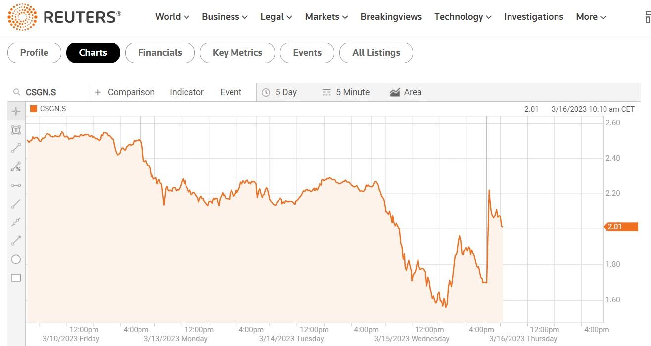 Credit Suisse assume un’azione “decisa per rafforzare preventivamente la sua liquidità con l’intenzione di esercitare la sua opzione di prendere in prestito “Questa ulteriore liquidità sosterrà le attività core e i clienti di Credit Suisse mentre Credit Suisse prende le misure necessarie per creare una banca più semplice e concentrata sulle necessità dei suoi clienti”, afferma Credit Suisse che oltre al rafforzamento della liquidità si offre per riacquistare debito per circa 3 miliardi di franchi.