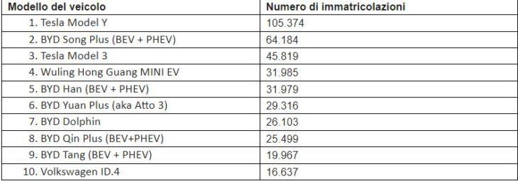 Figura: 1.060.000 nuovi veicoli elettrici sono stati immatricolati in tutto il mondo a novembre 2022. Tra di essi, i top 10 sono stati: