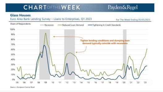 La Chart of the Week a cura dell’Economic Team di Payden & Rygel con un focus sull’indagine dei prestiti bancari in area Euro e gli effetti di una politica monetaria restrittiva sulle condizioni economiche.