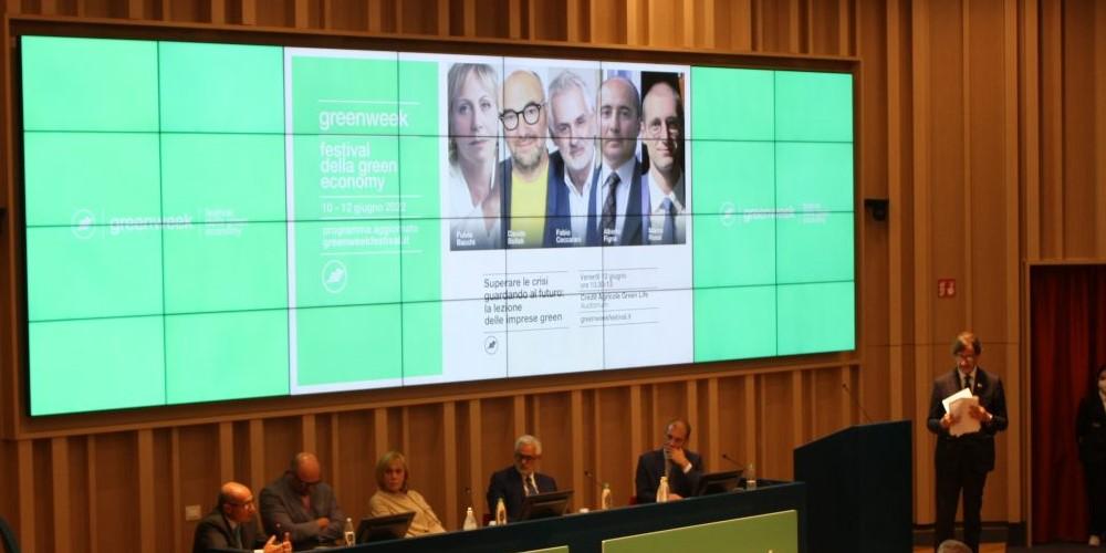 Dopo i saluti di Alessandra Pizzi, curatrice Green Week e amministratore delegato Post Eventi, intervengono Fulvia Bacchi, direttore UNIC Concerie italiane, Mauro Fanin, amministratore delegato Cereal Docks, Andrea Colombo, amministratore delegato di Lincotek, Maurizio Fusato, capo unità di transizione ecologica ed energetica Gruppo Feralpi e amministratore delegato Presider e Filippo Zuppichin, amministratore delegato Piovan.