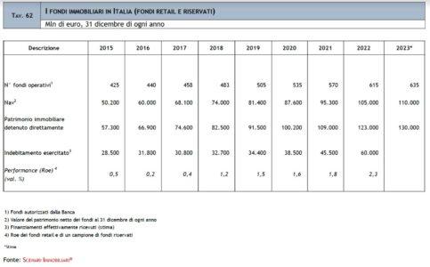 Anche l’Europa ha dimostrato una buona tenuta del comparto: con 1.895 fondi e 270 reit operativi, il patrimonio complessivo nel 2022 è stato pari a 1.530 miliardi di euro, in crescita di oltre sette punti percentuali. L’andamento espansivo degli ultimi anni si rafforza e nel 2022 il peso dei veicoli del vecchio continente sul patrimonio totale nel mondo ha sfiorato il trentacinque per cento. Se in Europa il fatturato è cresciuto del 3,5 per cento, nei primi cinque Paesi (UK compreso) la variazione è stata di oltre dieci punti percentuali con Germania, Inghilterra e Italia protagoniste della crescita. Nel nostro Paese, infatti, il patrimonio immobiliare detenuto direttamente dai 615 fondi attivi nel 2022 è arrivato a 123 miliardi di euro, con un incremento di circa il tredici per cento sul 2021.