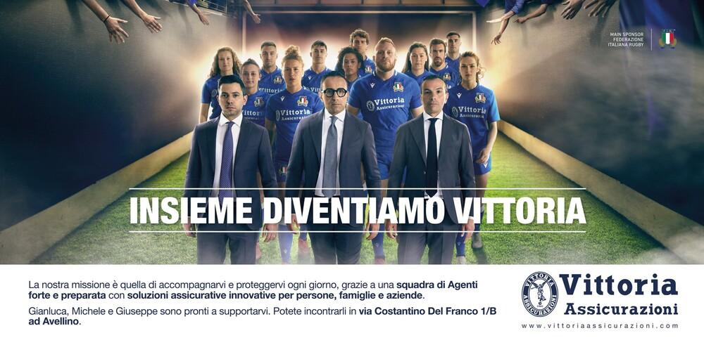Questa campagna premia ancora una volta l’impegno quotidiano, incessante e congiunto della Rete Agenziale confermandola come soggetto principale della cartellonistica. I protagonisti sono, infatti, gli Agenti stessi della Compagnia ritratti uniti verso il campo da gioco insieme ad un team di rugbisti formato proprio dai giocatori della Nazionale Italiana Maschile e Femminile di Rugby. Uno scatto fotografico d’impatto che diventa una forza non solo concettuale ma anche visiva, esprimendo al massimo il suo messaggio chiave: lo spirito di squadra. Così come nello sport questo ideale trascende i confini di gruppo di gioco assumendo quasi il significato di famiglia, allo stesso modo i 528 Agenti distribuiti in tutta la Penisola rappresentano molto più di un semplice team per i Clienti di Vittoria.