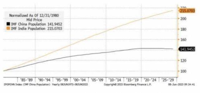Nel 2021, secondo i dati della Banca Mondiale, la variazione annua del tasso di crescita della popolazione indiana è stata del +0,8%, contro il +0,1% di Cina e Stati Uniti: un vero e proprio boom demografico, confermato anche dalle più recenti stime delle Nazioni Unite, che evidenziano come nel 2023 la Cina cederà il primato di paese più popoloso del mondo proprio all’India. Quest’ultima in aprile ha raggiunto il miliardo e 425.775.850 milioni di abitanti e si prevede continuerà a crescere per diversi decenni, mentre il Dragone, dopo aver toccato il record dei 1.426 miliardi nel 2022, ha invece iniziato un lento calo demografico e potrebbe addirittura scendere al di sotto del miliardo di abitanti entro la fine del secolo.
