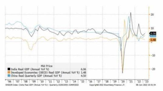 Senza dubbio questa rapida crescita demografica giocherà a favore della scalata dell’India verso la vetta delle maggiori economie a livello mondiale. Avere un’alta percentuale di giovani significa infatti poter fare affidamento su una forza lavoro più propensa al cambiamento, soprattutto nel settore tecnologico, in grado di dare spinta e dinamicità alla crescita economica del Paese. Attualmente l’India, con un Pil di quasi 3.500 miliardi di dollari, si posiziona al quinto posto a livello mondiale, tra le economie in più rapido sviluppo, ma si prevede che nei prossimi dieci anni passerà al terzo posto al mondo, con un Pil di circa 10.000 miliardi di dollari. Per il 2023 la Banca Mondiale stima che il tasso di crescita dell’India (+6,6%) supererà tutte le principali economie, inclusa quella cinese (+4,3%) e quella degli Stati Uniti (+0,5%).
