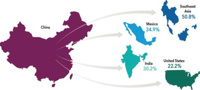 Principali destinazioni per le aziende che reindirizzano gli investimenti dalla Cina