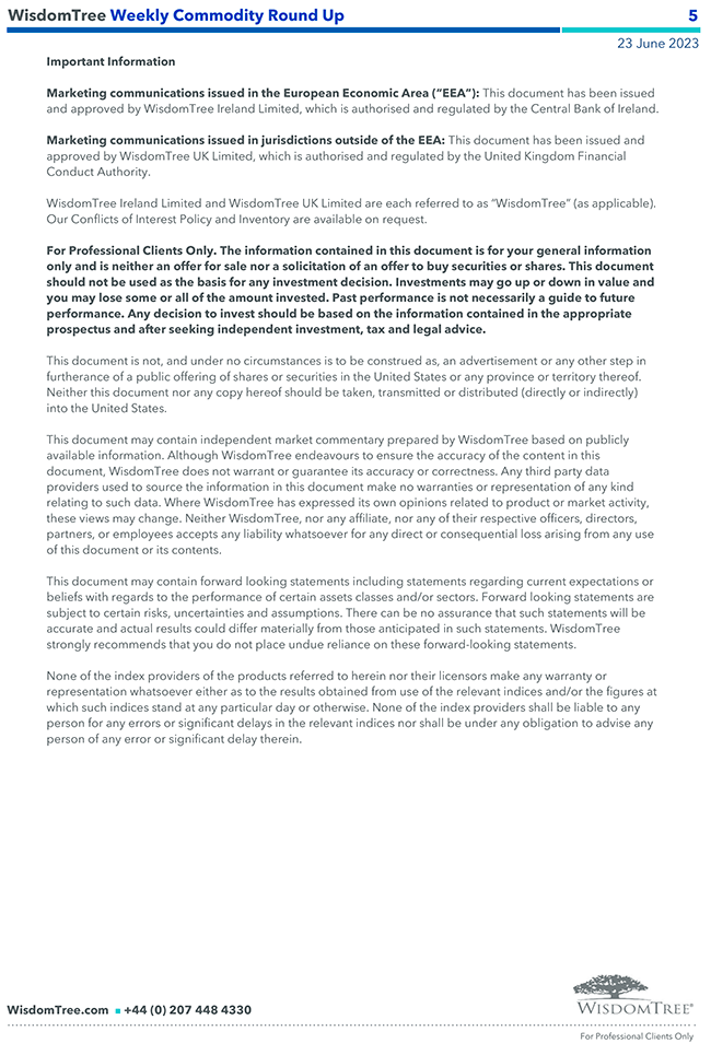 WisdomTree – Weekly “Commodity” Round Up – 23 giu 2023