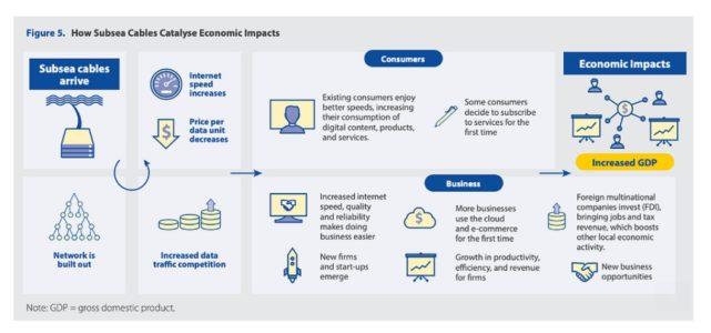 Il primo passo per raggiungere questo obiettivo è semplice: costruire più progetti di cavi sottomarini per servire i mercati emergenti, creare un eccesso di capacità e ridurre i costi a monte; mentre i passi successivi sono più impegnativi: affrontare l’accessibilità economica del medio e dell’ultimo miglio attraverso una regolamentazione positiva volta a stimolare l’innovazione e la scelta.