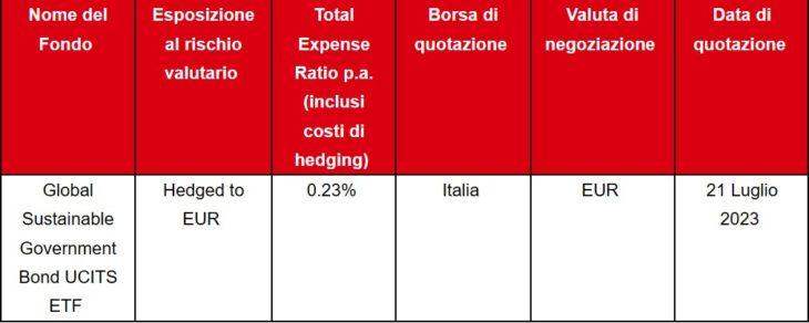 Le 19 nuove classi ETF includono diverse versioni di Global Sustainable Government Bond UCITS ETF, China Government Local Bond UCITS ETF, Global Government Bond UCITS ETF e Global Corporate Bond UCITS ETF. Le quotazioni sono iniziate lunedì 10 luglio e proseguiranno nei mesi di luglio e agosto e si concentreranno sulle borse del Regno Unito, Germania e Italia.