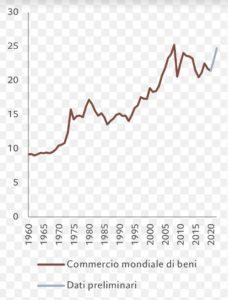 Commercio mondiale di beni, % del PIL