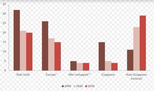 Quota mondiale del PIL (in USD), %