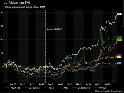 In attesa di scoprire cosa succederà, possiamo dare per assodato il fatto che l’intelligenza artificiale continuerà a dominare il mondo del lavoro da qui in avanti. Meno chiaro è l’elenco delle aziende che beneficeranno di questa svolta, tenendo a mente che la storia delle grandi rivoluzioni industriali è sempre costellata da aziende che nascono, si gonfiano, scoppiano e vengono dimenticate. Insomma, potremmo vedere scoppiare molte meteore prima di scoprire le Google e le Amazon della quarta rivoluzione industriale (ammesso che ce ne saranno). E questo non è un rischio da poco in un mercato dove le valutazioni P/E di alcune aziende specializzate raggiungono cifre esorbitanti con rapporti oltre 30/40 punti, contro una media del settore tech intorno ai 25.