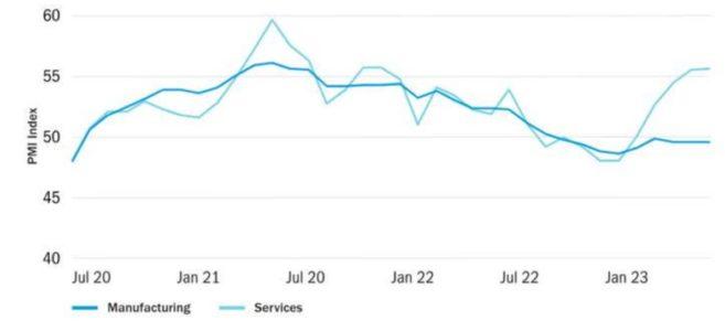 Mentre il settore dei servizi è stato dinamico, quello manifatturiero è stato ostacolato da una domanda più debole e da un eccesso di giacenze di magazzino. Di conseguenza, la crescita è stata assorbita dalle aree dell’economia ad alta intensità di lavoro e a bassa produttività, facendo aumentare l’occupazione, i salari e l’inflazione.