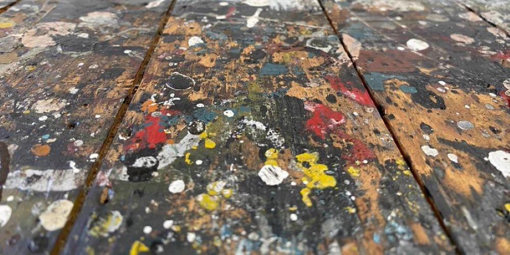 Pollock ha posato le sue tele direttamente sul pavimento del suo studio, creando così inconsapevolmente opere d’arte tutt’all’intorno delle tele. Quando il pavimento del laboratorio fu rivelato al pubblico negli anni ’80, provocò una vera meraviglia. I curatori si sono presto resi conto che questi schizzi e gocce di vernice erano in realtà una preziosa documentazione del processo creativo di Pollock. Da allora, gli storici dell’arte sono stati in grado di tracciare collegamenti tra alcune delle sue opere iconiche e i segni trovati sul pavimento dello studio, come Blue Poles (1952) e Convergence (1952).