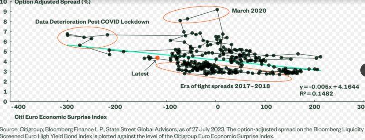 Gli spread option-adjusted sull’indice Bloomberg Liquidity Screened Euro High Yield Bond si aggirano intorno ai 550 punti base, ma presentano comunque 50 punto base in più rispetto alla media decennale. Quindi è stato prezzato un certo cuscinetto per gli esigui dati attuali sulla crescita.