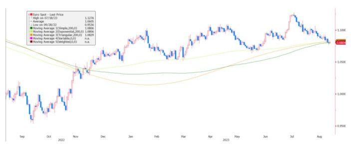 anno, dopo aver toccato temporaneamente punte minime poco al di sotto (1,06/1,07) dell’importante supporto a 1,08 (coincidenza di livello delle principali mm 200 giorni).