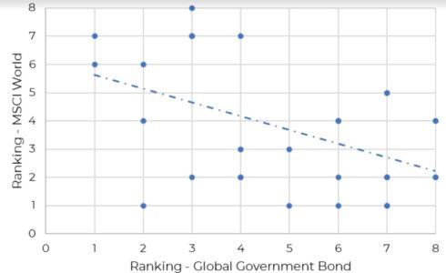 Nel 2022 azionario e obbligazionario sono scesi entrambi di circa il 12% (Msci World e Barclays Global Aggregate Government Treasuries – fonte: Bloomberg), un avvenimento storicamente piuttosto raro e, in quel caso, dovuto principalmente a livelli di inflazione elevati, sulla scia delle tensioni geopolitiche che hanno determinato il rialzo repentino dei tassi d’interesse da parte dei banchieri centrali e, con questo, l’inversione della correlazione tra azioni e reddito fisso. Nei primi mesi del 2023 abbiamo assistito a un ampio recupero e per la restante parte dell’anno ci attendiamo una normalizzazione della correlazione tra azioni e obbligazioni, in linea con i dati storici.