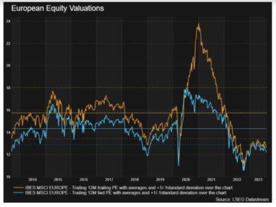 Innanzitutto, le valutazioni dell’equity europeo restano attraenti e sembrano già incorporare molte delle preoccupazioni menzionate. I rapporti Price/Earnings attuali e previsti sono inferiori alla media degli ultimi 10 anni di oltre una deviazione standard;