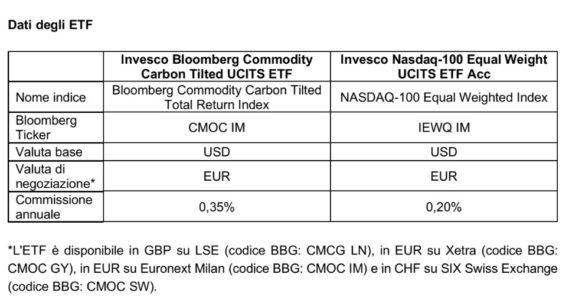 emissioni di gas serra per unità di produzione. L’ETF Invesco è il primo ETF su materie prime ad