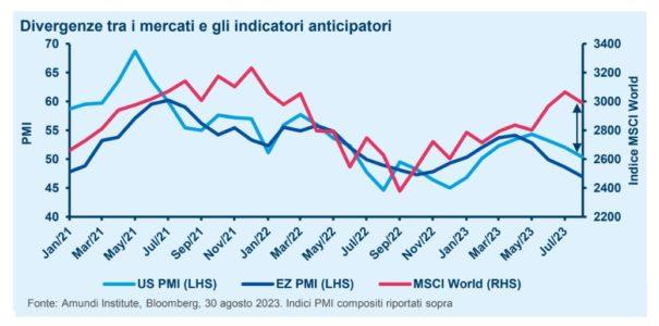 Tuttavia, il sentiment ha risentito del rallentamento congiunturale della Cina, dove abbiamo rivisto al ribasso le nostre stime sulla crescita per il 2023, che abbiamo portato dal 5,1% al 4,9%. Il dato più importante, però, è che gli indicatori anticipatori negli Stati Uniti e in Europa suggeriscono una decelerazione imminente. Tutto ciò crea una situazione di bassa visibilità per i prossimi mesi, quando l’economia mondiale – a nostro parere – sarà influenzata dai seguenti fattori: