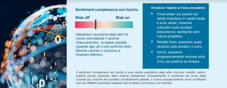 ▪ Cross asset. L’incertezza riguardo agli utili e al contesto economico impongono cautela verso le azioni statunitensi ed europee, mentre siamo positivi sui Paesi emergenti. Per quanto riguarda il reddito fisso, il rialzo dei rendimenti ci rende ottimisti sulla duration statunitense, anche se manteniamo alcune coperture, mentre rimaniamo difensivi sulle obbligazioni societarie high yield statunitensi viste le valutazioni elevate. Apprezziamo alcune obbligazioni in valuta locale dei Paesi emergenti e siamo leggermente più costruttivi sui tassi brasiliani dopo il recente taglio. Questo potrebbe fungere anche da elemento di diversificazione riguardo al real brasiliano/dollaro statunitense, nei confronti del quale siamo più costruttivi. Nel complesso, siamo convinti che sia necessario mantenere delle coperture sulle azioni e un orientamento positivo riguardo all’oro, pur consapevoli del suo potenziale rialzista limitato.