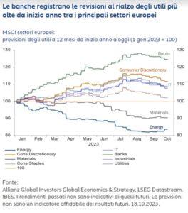 Infine, può essere utile considerare la resilienza degli utili societari anche da un’altra prospettiva. Per le banche centrali, in ultima analisi, i margini di profitto elevati contribuiscono ad aumentare la pressione inflazionistica. Ciò significa che dovranno ancora per qualche tempo continuare a ricercare un equilibrio tra la lotta all’inflazione e il sostegno alla crescita. Nel breve termine, i mercati potrebbero essere influenzati dalle rinnovate tensioni in Medio Oriente. I prezzi del petrolio potrebbero tornare al centro della scena. Per il momento, comunque, i mercati hanno dimostrato una certa resilienza.