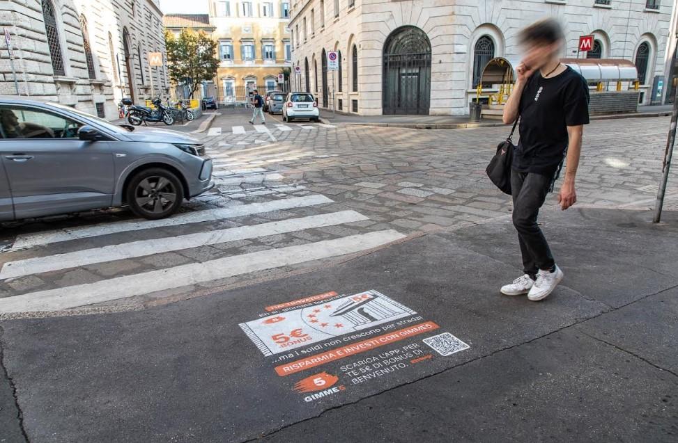 Gimme5 – la soluzione fintech che permette di accantonare piccole somme via smartphone e investirle in fondi comuni per raggiungere obiettivi di vita concreti – mette l’innovazione anche al centro della propria strategia di comunicazione e lancia una nuova campagna di street marketing per le strade di Milano. Dal 2 al 16 ottobre, i marciapiedi della capitale finanziaria d’Italia faranno da sfondo a un’iniziativa di floor advertising in chiave FinTech: i passanti che si imbatteranno nella “Banconota Gimme5” potranno inquadrare il QR code e, con un semplice clic, accedere a un welcome bonus del valore di 5 euro per avviare il proprio percorso di risparmio in app.