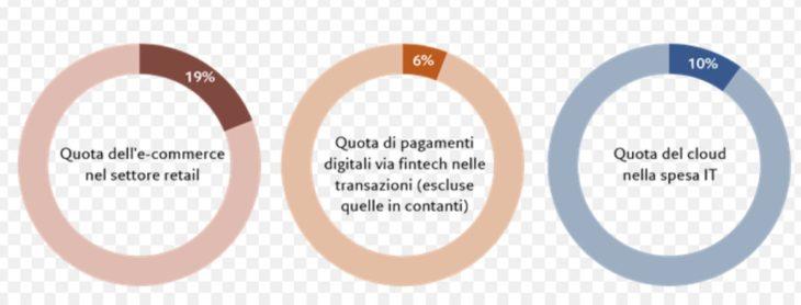 Prendiamo, l’e-commerce. Al momento costituisce meno di un quinto dei 26.000 miliardi di dollari del mercato mondiale della vendita al dettaglio. Allo stesso tempo, il cloud computing rappresenta solo il 10% della spesa totale per l’IT. E solo il 6% delle transazioni con carta di credito viene saldato tramite pagamenti digitali fin tech (come quelli effettuati con lo smartphone).