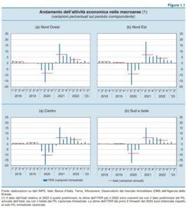 Nel 2022 l’economia è cresciuta in misura significativa in tutte le macroaree, dopo l’eccezionale recupero dell’anno precedente; l’espansione è stata più forte nel Nord Est e al Centro. Nella prima metà del 2023, invece, secondo l’indicatore trimestrale dell’economia regionale (ITER) elaborato dalla Banca d’Italia, l’attività si è affievolita in tutte le aree, risentendo del rallentamento della domanda interna ed estera. Gli investimenti si sono indeboliti, anche se sostenuti dagli incentivi del Piano nazionale di ripresa e resilienza (PNRR); in prospettiva, le vendite rimarrebbero stazionarie. L’espansione dell’occupazione è continuata nei primi sei mesi dell’anno in corso, con maggiore intensità al Centro Nord.