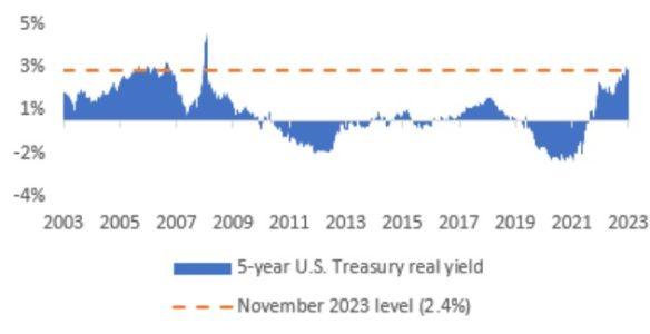 Grafico 2: Rendimento reale del Treasury USA (2003-2023)