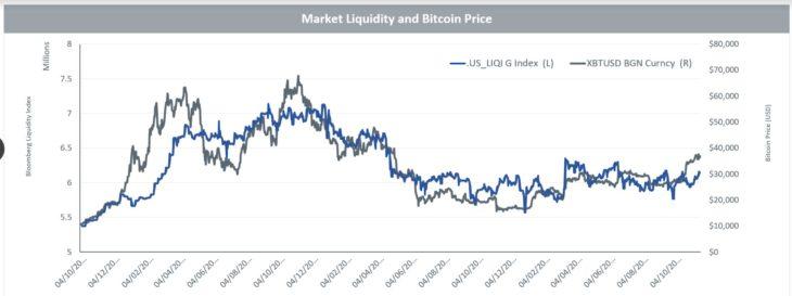 Figura 2: Liquidità del mercato e prezzo del bitcoin
