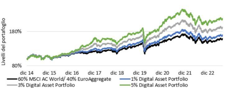 Figura 1: Il portafoglio con asset digitali ha sovraperformato il tradizionale portafoglio 60/40