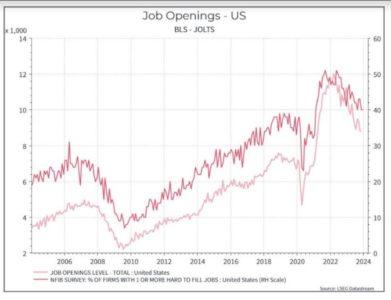 Infine, dobbiamo riconoscere il ruolo degli shock esterni. La Fed non è così onnipotente come si potrebbe immaginare. Si sostiene che la Fed non abbia avuto molto a che fare con la riduzione dell’inflazione e che questa sia dovuta a fattori quali il miglioramento della catena di approvvigionamento globale. Se questo è vero, un altro shock di approvvigionamento – ad esempio legato a un conflitto in Medio Oriente o in Asia – potrebbe colpire nuovamente l’inflazione e la fiducia dei consumatori.
