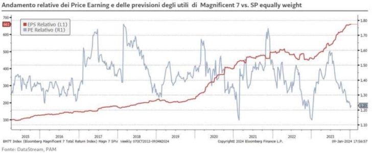 Fig.3 Le valutazioni relative alle Magnifiche 7 non mostrano eccessi rispetto alla dinamica degli utili
