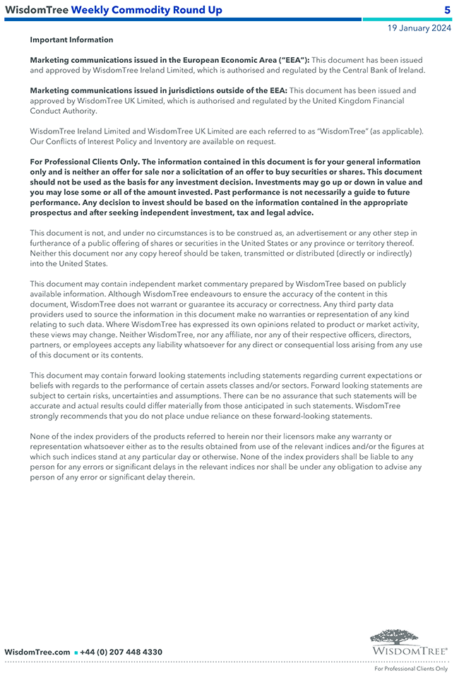 WisdomTree – Weekly “Commodity” Round Up – 19 jan 2024