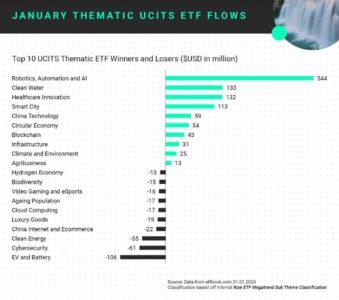 Il 2024 è iniziato con flussi netti positivi per gli ETF tematici, con un bilancio in verde di 597 milioni di dollari su circa 979 milioni di flussi lordi complessivi nel mese di gennaio.