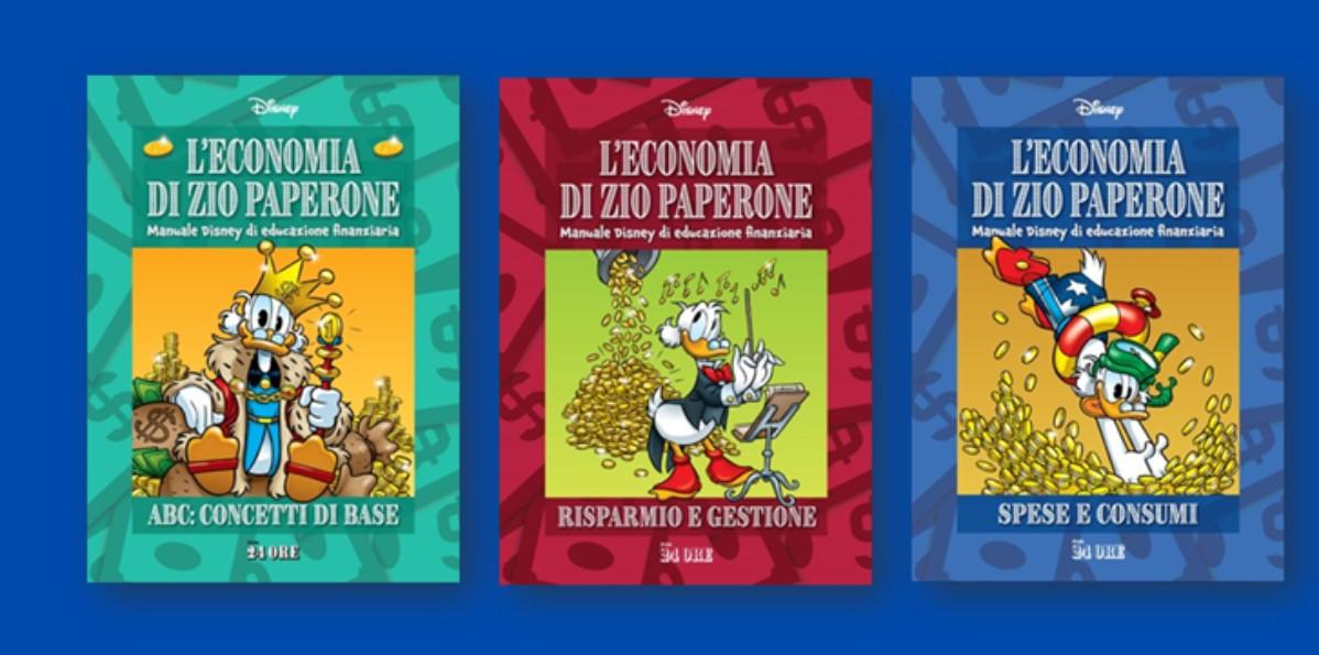 A 30 anni dalla prima iniziativa di educazione finanziaria del Sole 24 Ore che negli anni Novanta portò in edicola la fortunata serie di fumetti “L’Economia di Zio Paperone”, Il Sole 24 Ore torna a collaborare con la divisione Disney di Giunti Editore proponendo la nuova collana in quattro volumi “L’Economia di Zio Paperone. Manuale Disney di educazione finanziaria” realizzata in collaborazione con Giunti e con il supporto di FinanzaInsieme.com, piattaforma web gratuita e aperta a tutti, creata da Intesa Sanpaolo per avvicinarsi in modo consapevole e con semplicità ai temi legati al mondo finanziario.