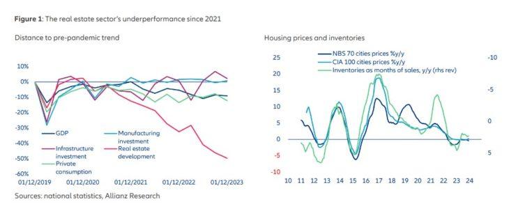 Per questo ci si aspetta che Pechino torni a spingere i progetti infrastrutturali e che la banca centrale proceda ad un taglio dei tassi di interesse. Il settore immobiliare potrebbe beneficiarne con una ripresa del mercato residenziale. Nel 2023 sono stati costruiti 724 milioni di metri quadrati di alloggi, superando la domanda complessiva. Gli alloggi vengono consegnati nel tentativo di ripristinare la fiducia nel mercato immobiliare, ma il loro valore futuro rimane incerto.