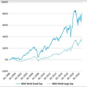 Fonte: Bloomberg, MSCI World Large Cap Index e MSCI World Small Cap Index. In base agli indici total return lordi in USD, dal 31 dicembre 1998 al 31 marzo 2023.